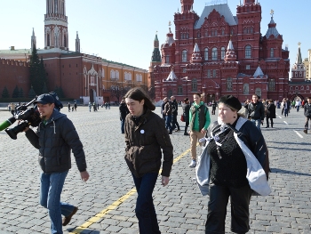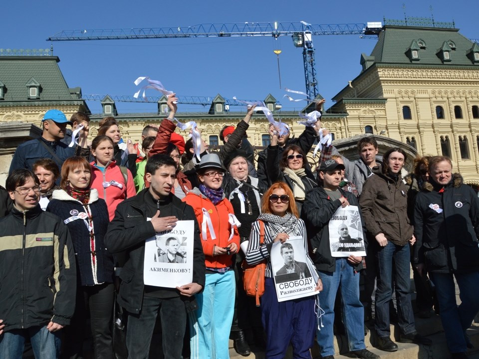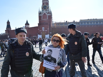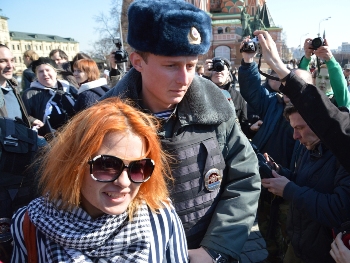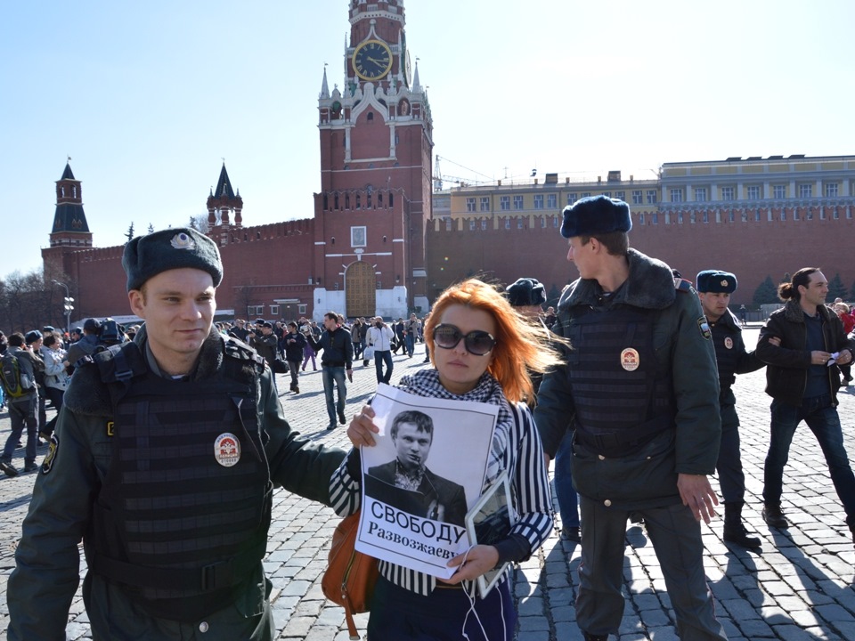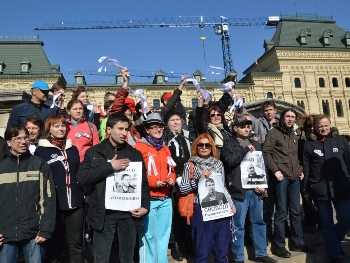 На Красной площади прошли протестные гуляния в поддержку фигурантов "болотного дела". Акция была посвящена Марии Бароновой, у которой 13 апреля был день рождения.