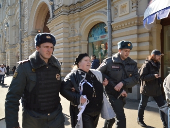Полицейские перекрыли площадь и задержали несколько участников акции.