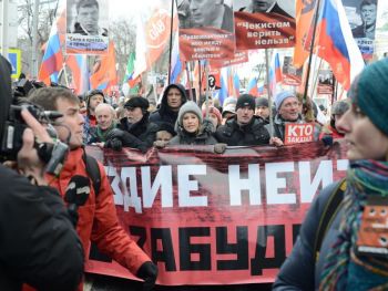 В Москве 25 февраля прошло шествие памяти политика Бориса Немцова, убитого три года назад. В акции приняли участие больше семи тысяч человек.