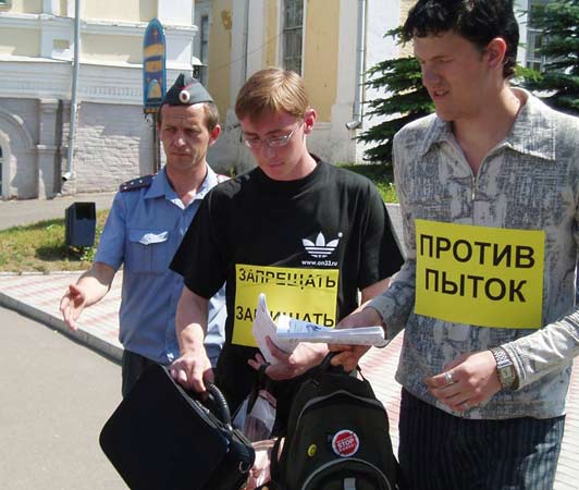 Особенно активно во Владимире пресекаются акции ОГФ, НБП и "Обороны". Например, пикет в защиту и поддержку политзаключенных – Ходорковского, Лебедева, Бахминой в октябре 2005 был просто запрещен вице-мэром Гареевым безо всяких на то оснований. На указанное место приехал наряд милиции, и на организатора пикета – руководителя РО ОГФ Алексея Шляпужникова – был составлен протокол об административном правонарушении. В ответе на жалобу на действия вице-мэра и милиции прокурор признал, что ответ администрации на уведомление о пикетировании не противоречил закону, но и не являлся запрещением на его проведение.