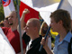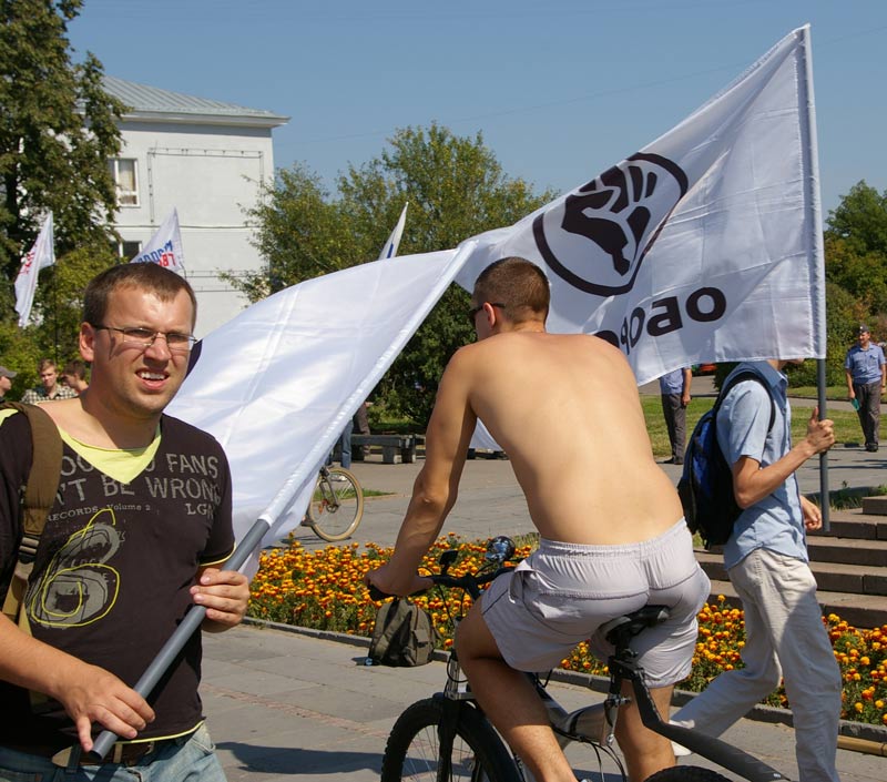 Одновременно с митингом "Другой России" на этой же площади в Пскове прошел антимитинг. Молодые люди держали флаги "Молодой гвардии". Как сообщил его организатор, лидер псковского регионального объединения "Первый рубеж" Сергей Анисимов, их акция называлась "Нам не нужна другая Россия".