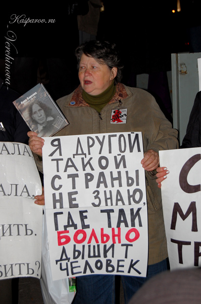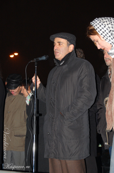 "Власть лишает нас не только свобод, которые были у нас в конце 90-х, но и самых элементарных принципов Конституции, которые нам должны гарантировать. В обществе снова поселился страх. Власть постоянно его использует, нагнетает его, чтобы нас было меньше, чтобы люди боялись активно высказывать свою позицию. Главное для нас сейчас – преодолеть страх", - заявил Каспаров, выступая на митинге.