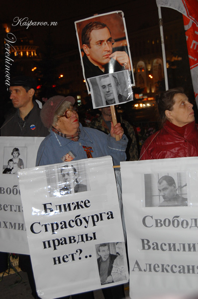 На митинге на Лубянке присутствовало около 200 человек. Пришедшие держали плакаты с именами погибших журналистов, требованиями свободы политзаключенным. Участники митинга держали лозунги "Свободу политзаключенным", "Ближе Страсбурга правды нет" и другие. Выступили Гарри Каспаров, лидер НДС Михаил Касьянов, член партии "Яблоко" Сергей Митрохин, лидер правозащитной группы "Совесть" Михаил Кригер, пресс-секретарь нацболов Александр Аверин, представители правозащитного общества "Мемориал". По итогам митинга была принята резолюция – обращение к Владимиру Путину с требованием, чтобы с завтрашнего дня не было больше политзаключенных.