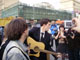 Ближе к 19:30 на Триумфальной площади среди ожидающих непонятно чего журналистов появился член политсовета "Солидарности", кандидат в Мосгордуму Роман Доброхотов с гитарой. Он начал петь песню The Beatles "Yellow submarine". Доброхотову удалось допеть до конца, после чего, в который раз, омоновцы поволокли его и еще нескольких человек к автобусам. Во время задержания Доброхотова журналисты скандировали "Позор!".