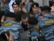 Следующий "очаг неповиновения" возник рядом с ограждением, в непосредственной близости от проезжей части. Естественно, реакция силовиков последовала незамедлительно.