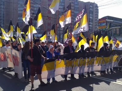 Впереди колонны идут девушки, бьющие в барабаны, в центре колонны несут большой имперский флаг. По данным корреспондента, в мероприятии принимают участие около тысячи человек.
