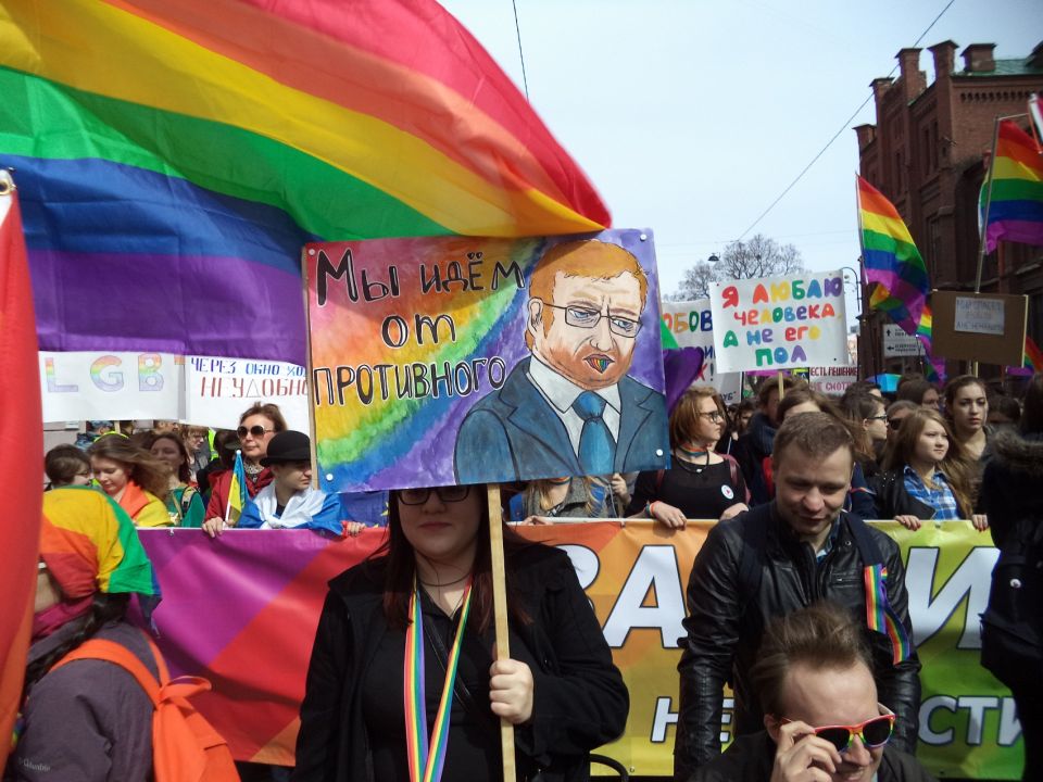 Но есть мелодии, действующие на эту публику, как красная тряпка на быка. К примеру, "Полковник Васин" БГ или "Воины Света" Ляписа Трубецкого. Стоило на демократическом марше включить эти мелодии - и к нам явились гости. Незваные, хотя и не неожиданные. Печально известный депутат Заксобрания Милонов обещал, что "народ" встанет стеной, если в демократической колонне будут ЛГБТ-активисты со своими флагами. Они появились. Появился и Милонов. Правда, с народом как-то не очень задалось, со "стеной" - тоже. Но имелись даже "журналисты" из т.н. "ДНР".