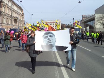Первомайская демонстрация начинается у метро. И пока добираешься до своих, проходишь мимо самых разнообразных колонн - как правило, приправленных черно-желтой символикой - от КПРФ до "лимоновцев" и прочих "новороссов". Так было и на сей раз. Даже остановился рядом с одной из "новоросских" колонн, уже готовых выйти на Невский: под флагами со Сталиным неожиданно грянул... "Запорожский марш". Вероятно, тех, кто ходит под вождем, подвело невежество. "Им можно и власовский марш, например, поставить, и "Червону калину" - что-то милитаристское? Сойдет!" - говорит приятель, тоже идущий на демократическую акцию.